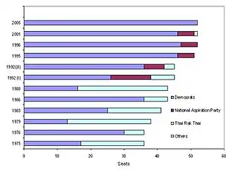 - ^ "Democrat disarray: What's behind the dramatic decline of Thailand's oldest party?". www.thaipbsworld.com. Retrieved 15 September 2023.