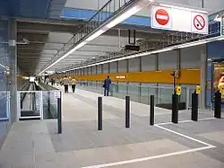Depo Hostivař (Czech pronunciation: [ˈɦoscɪvar̝̊]) is a Prague Metro station and terminus of Line A. It is located on Černokostelecká street, which forms the border between Strašnice and Malešice in Prague 10. The station was constructed in the building of an existing metro depot and was opened on 27 May 2006 as the eastern terminus of the extension from Skalka.[1]