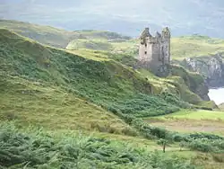 | – | Carrik-steach | 11 | Carrith Skeathe | Carraig Sgeith or Dunaverty Castle | Carraig Sgeith is a tiny island at NR656071, and the castle is on a headland 3 kilometres (1.9 mi) to the east.[56][Note 7] | |