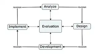 A similar approach is the ADDIE Model of instructional design, a framework of generic processes used by instructional designers and training developers.[9] It represents a descriptive guideline with five distinct phases: