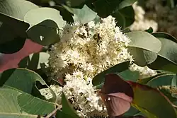 Detarium microcarpum has several other uses for rural communities, leaves being used to thatch roofs, seeds dried and made into necklaces or are ground and used as a fragrance (considered to have an aphrodisiac effect) and mosquito repellent prepared from the roots.[28] Leaves and roots are also used to treat farm animals.[29] Hardness, as well as its moisture, weathering and pest resistance makes it useful for construction and carpentry.[30] It lights quickly making it high-quality fuel wood and charcoal.[31]