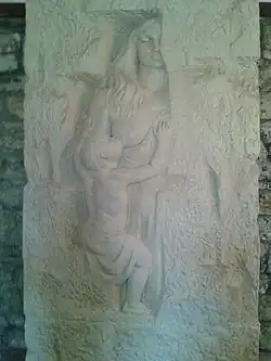 The cult of the earth mother goddess is also reflected in the renowned Balkan motif of immurement, a practice that according to legend is required to ensure the accomplishment of the construction of a building by sacrificing the wife of the chief builder. This motif is documented in Albanian legends about the construction of the strongholds of Shkodër (Rozafa Castle#Legend), Dibër, and Berat, but also in regions like Mirditë or Malësia e Madhe.[24] In the Albanian legends, the woman who is to be immured in the building accepts to be sacrificed, but worried about her infant son, she makes the request to leave one of her breasts unwalled, so that she can nurse her son, the castle will stand and the son will enjoy it, becoming brave and winning battles in it. People regard the lime water that flows from the walls of these buildings as the milk of the immured woman, and it is utilized as medicine to apply to the breasts of the nursing women believing that this practise would increase their milk supply.[25]