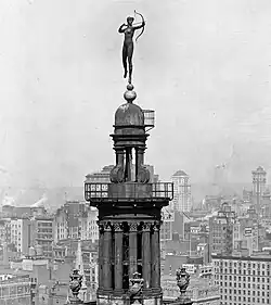 Madison Square Garden was slated to be demolished in 1925 to make way for construction of the New York Life Building.[14] Prior to the building's demolition, Diana was removed and put in storage. The intention was for the statue to remain in New York City, however a seven year search to find a place to display it proved futile. In 1932, the New York Life Insurance Company presented Diana to the Philadelphia Museum of Art as a gift.[15] It remains displayed on the balcony of the museum's Great Stair Hall.[16]