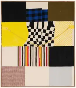 Critics situate Guerrero-Maciá's work at the intersection of painting, fiber, design and conceptual art traditions, noting its blurring of such boundaries and refusal of binaries such as "high" modernism or craft, formal severity or kitsch playfulness, geometric, hard-edged or biomorphic, pliable forms, the metaphysical or quotidian.[23][6][3][7] She works in two- and three-dimensional media, with a long history of hybrid techniques including collage, assemblage, sewing and dyeing, sampling and appropriation inspired by the work of artists such as Robert Rauschenberg and the Pattern and Decoration movement.[21][3][7]