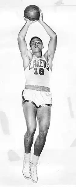 Garmaker made the All-Star team as a reserve in 1959 and 1960.[36] In 1958-59, his last full season with the Lakers, he averaged 13.7 points, 4.5 rebounds and 2.9 assists per game during the regular season.[37] Although under .500, the Lakers led by rookie Elgin Baylor made the playoffs, reaching the NBA finals against Bill Russell and the Boston Celtics, where they lost in four games. Garmaker averaged 19.3 points and 4.3 rebounds per game against the Celtics.[37][38]