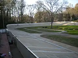 Dick Lane Velodrome, constructed in 1974, is a bicycle racing facility inspired by a group of residents and City officials that visited the Munich Olympics. Located eight miles south of downtown Atlanta, the Velodrome is 321.8 metres (1,056 ft) with 36° banked concrete track and is based in Sumner Park in a residential part of East Point. The City of East Point owns the facility and has a long-term partnership with East Point Velodrome Association, Inc. (EPVA) to manage it. It is one of 22 active velodromes in the United States.[1]