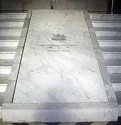 Portales' remains, missing since his assassination, were found in March 2005 in Santiago's Metropolitan Cathedral during renovation projects, and were identified after forensic examination.[8] On June 20, 2006, the remains were taken to the civic crypt of the Cathedral for a civic-religious re-burial ceremony attended by then-President Michelle Bachelet, along with several civil and military authorities.