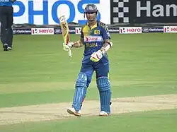 In First class career, he scored 64, 04, and 109 in his first three innings for Sri Lanka Cricket Development XI.[9][10] He is an aggressive batsman who scored two centuries for his country's U-19s, which he vice-captained,[11] and played for the Sri Lanka Cricket XI and Schools Invitation XI for List A and Twenty20 cricket.[12] During the 2012 Indian Premier League (IPL) auction, he was bought for $50,000 by the Rajasthan Royals. Later, he signed a contract with Chittagong Vikings to play in the upcoming Bangladesh Premier League for the Chittagong Vikings.