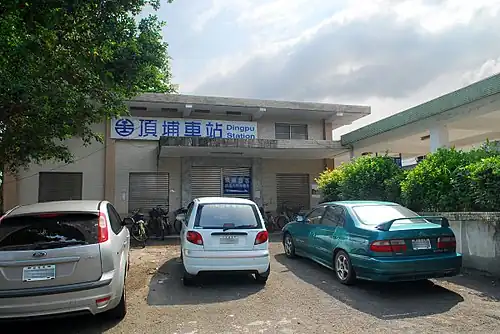 Dingpu (Chinese: 頂埔車站; pinyin: Dǐngpù Chēzhàn) is a railway station of Taiwan Railways Administration (TRA) Yilan line located at Toucheng Township, Yilan County, Taiwan. Dingpu Station began operations in 1937.