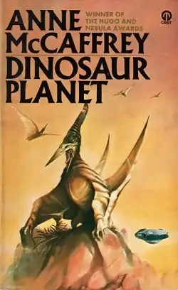 Dinosaur Planet is a science fiction novel by the American-Irish author Anne McCaffrey.[3] It was a paperback original published in 1978, by Orbit Books (UK) and then by Del Rey Books (US), the fantasy & science fiction imprints of Futura Publications and Ballantine Books respectively.[4]