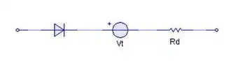 The real diode now can be replaced with the combined ideal diode, voltage source and resistor and the circuit then is modelled using just linear elements. If the sloped-line segment is tangent to the real diode curve at the Q-point, this approximate circuit has the same small-signal circuit at the Q-point as the real diode.