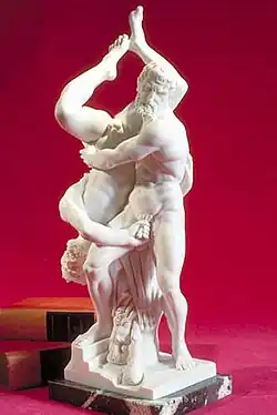 In Greek mythology, King Diomedes of Thrace (Ancient Greek: Διομήδης) was the son of Ares and Cyrene.[2] He lived on the shores of the Black Sea ruling the warlike tribe of Bistones.[3][4] He is known for his man-eating horses,[5] which Heracles stole in order to complete the eighth of his Twelve Labours, slaying Diomedes in the process.[2]