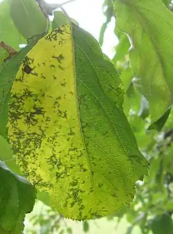 Marssonina blotch is a fungal disease of apple leaves and fruit[3] that is caused by Diplocarpon coronaria.[4]