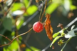 Diplocyclos palmatus is a vine in the family Cucurbitaceae. It is commonly known as native bryony or striped cucumber.[1] In Marathi, it is called shivlingi due to its seed which resembles a lingam.