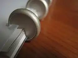 Disc-binding is a type of notebook binding that uses discs to hold the sheets of paper. Each disc has a raised edge. Notebook sheets have perforations along the binding edge that match the profile and spacing of the binding discs.