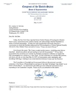 After The New York Times report, leaders of the House Oversight Committee and Intelligence Committee, as well as those of the Senate Intelligence Committee and Judiciary Committee, requested the production of all Comey memos, with a deadline of May 24. On May 25, the FBI said it was still reviewing the Committees' requests, in view of the appointment of the special counsel.[166]