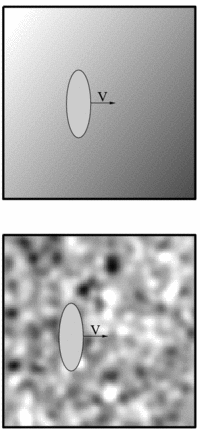 The model can be used to describes the dynamics of a Brownian particle in an Ohmic environment whose fluctuations are uncorrelated in space.[3][4] This should be contrasted with the Zwanzig-Caldeira-Leggett model, where the induced fluctuating force is assumed to be uniform in space (see figure).