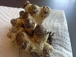 D. odoratum is a parasitic fungus that transforms its host's sporocarp into ochre-colored, tuber-like deformity where the original cap and foot have atrophied. The deformation, consisting of the host's swollen trama and the filaments of the parasitic fungus is no longer recognized as a veiled hebeloma, but it may still smell and taste like radish.[3][12]