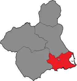 The constituency was created as per the Statute of Autonomy for the Region of Murcia of 1982 and was first contested in the 1983 regional election. The Statute provided for sub-provincial divisions of the Principality's territory to be established as multi-member districts in the Regional Assembly of Murcia, with this regulation being maintained under the 1986 regional electoral law. Each constituency was entitled to an initial minimum of one seat, with the remaining 40 being distributed in proportion to their populations. The exception was the 1983 election, when constituencies were allocated one fixed member and one additional member per each 25,000 inhabitants or fraction greater than 12,500.[1][2]