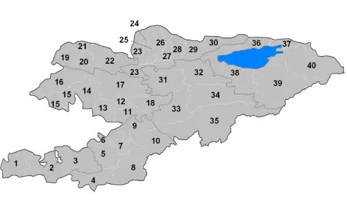 | Panfilov | Панфилов | Kayyngdy | 39,837 | 2,606 | 15.3 | 6 | 1 | * | 20 | 23 |