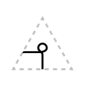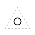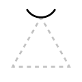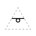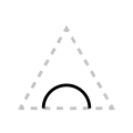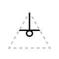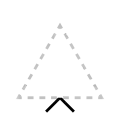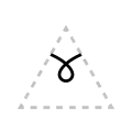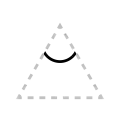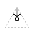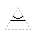 The apex of the triangle or chevron corresponds to vowel height or frontedness, with high vowels /i/ and /u/ pointing upwards and the low vowel /a/ pointing downwards. Likewise, the front vowels /ɛ/ and /e/ point leftwards and the back vowels /ɔ/ and /o/ point rightwards.