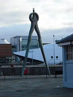 Dividers is an outdoor sculpture located at Clarendon Dock, on the River Lagan, Belfast, Northern Ireland. It was produced in 2002 by artist Vivien Burnside and is an 8.3m tall set of dividers made of bronze with a stainless steel core.[1] It was funded by Laganside Corporation, Belfast Harbour Commissioners and the National Lottery through the Arts Council of Northern Ireland.[2][1]