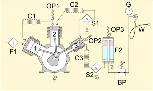 - ^ a b c d e f g h i j k l m n o p q r s Green, Ted. "Understanding SCUBA Compressors and Filtration" (PDF). Australian National University SCUBA Diving Club. Archived from the original (PDF) on 18 November 2017. Retrieved 10 March 2018.