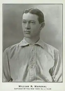 William Riddle Marshall (September 22, 1875 – December 11, 1959), was a professional baseball player who played catcher for several National League clubs from 1904 to 1909. He briefly managed the Chicago Whales during the inaugural Federal League season. After his baseball career, Marshall practiced medicine in rural Illinois for 45 years.
