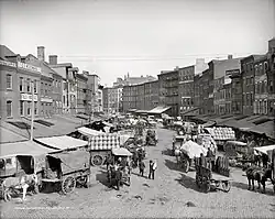 ![]() Dock Street Market in Philadelphia facing north from Spruce Street, c. 1910 | |