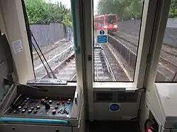 The cars do not have a driver's cab, although there is a small driving console hidden behind a locked panel at each outer car end from which the Passenger Service Agent (PSA) can manually drive the train if necessary. Other consoles at each door vestibule allow the PSA to control door closure and make announcements whilst patrolling the train. Because of the absence of a driver's position, the fully glazed car ends provide a panoramic forward (or rear) view for passengers.[7] At least one PSA is required on each train to close the doors upon departing and for emergency situations, such as taking the controls or evacuating the train, especially in tunnelled sections.[12]