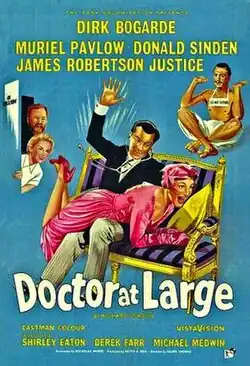 Doctor at Large is a 1957 British comedy film directed by Ralph Thomas starring Dirk Bogarde, Muriel Pavlow, Donald Sinden, James Robertson Justice and Shirley Eaton. It is the third of the seven films in the Doctor series, and is based on the 1955 novel of the same title by Richard Gordon.