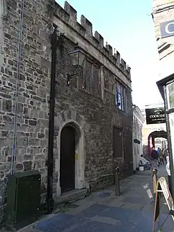 The original home of the library was in a small purpose-built two storey crenellated building formed by adding two walls to a concave corner on the north-east end of St Peter's Church, Barnstaple, to form a rectangular building. A stone tablet is set high into the wall inscribed: Bibliotheca Doddridgiana 1667. Its entrance is from the narrow lane known as "Church Walk" which leads southward from "Butchers' Row" past the east end of the parish church and continues as "Church Lane" past the "Church Lane Almshouses". It is a grade II* listed building.[7]