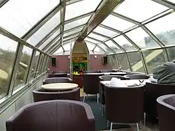 A new generation of dome lounges currently operate in cruise train service in Alaska[30] and Canada. These do not necessarily use the traditional dome design, but are more similar to the bi-level design first seen in commuter-style "gallery" cars on U.S. railroads in the 1950s and on the "Hi-Level" cars built by the Budd Company in 1956 for the Atchison, Topeka & Santa Fe El Capitan train.[31]