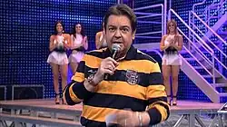In 2008, Domingão celebrated its 1000th episode.[9] In addition to the celebrations, Fausto was congratulated by some personalities, including then president Lula.[10] In 2009, the program celebrated 20 years in the air, promoting the edition Melhores do Ano de 2008 (which was intentionally delayed). In December of that year, the resignation of some members of the cast and production was announced. Among them, Adriana Colin (merchandising), Caçulinha (literally little young brother - musical director) and Lucimara Parisi (director).[11]
