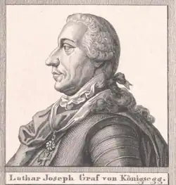 Lothar Joseph Dominik Graf von Königsegg-Rothenfels (17 May 1673 – Vienna, 8 December 1751) was an Imperial Field marshal. During the War of the Polish Succession, he organized the successful raid on Quistello against the Franco-Sardinian army.