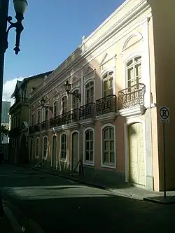 On her return to São Paulo after the end of her relationship with Emperor Pedro I of Brazil, Domitila acquired in 1834 a vast mansion on the old Rua do Carmo, currently Rua Roberto Simonsen in the city center. The first owner of the property was Brigadier José Pinto de Morais Leme according to documentation from 1802. Previously, on the site, there were two houses that were renovated and gave rise to a single building. Domitila was the owner of these house from 1834 until her death in 1867.