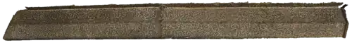 The inscription is 19 cm tall and 1658 cm long, with characters 4.3 cm tall, 3.4 cm wide & 0.3 cm deep.