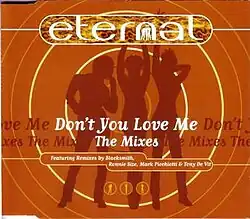 "Don't You Love Me" is a song by British R&B girl group Eternal. It was the second single to be released from their third studio album, Before the Rain (1997), released in February 1997 by EMI and 1st Avenue. The song was written by Cynthia Biggs, Carolyn Mitchell, Terence Dudley and Christopher Kellum, and produced by Ronnie Wilson and Dennis Charles. It deals with child neglect and abuse and features a choir of 20 children.[3] "Don't You Love Me" was well-received by music critics and peaked at number three on the UK Singles Chart in March 1997, becoming the group's tenth top-10 entry on the chart, as well as their first top-three hit.