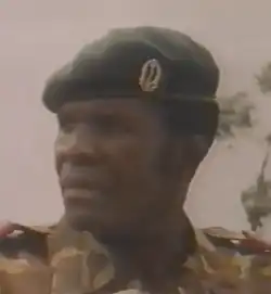 One of the few Zairian generals not related to Mobutu,[2] he was unique in that he attained his rank on his own merits, rather than through political patronage.[2][4][5] Trained in France, he was a member of Mobutu's bodyguard in the 1970s.[2] He fought in the Shaba I conflict,[5] and came to prominence during the Shaba II war.[2] He distinguished himself during the Shaba wars through his discipline and good conduct.[5] After Shaba II, he was promoted to general and given command of the Berets Rouge (French: "Red Berets").[2]