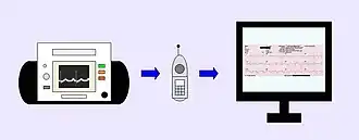 Depending on how the prehospital 12 lead ECG program is structured, the 12 lead ECG can be transmitted to the receiving hospital for physician interpretation, interpreted on-site by appropriately trained paramedics, or interpreted on-site by paramedics with the help of computerized interpretive algorithms.[24] Some EMS systems utilize a combination of all three methods.[19] Prior notification of an inbound STEMI patient enables time saving decisions to be made prior to the patient's arrival. This may include a "cardiac alert" or "STEMI alert" that calls in off duty personnel in areas where the cardiac cath lab is not staffed 24 hours a day.[19] The 30-30-30 rule takes the goal of achieving a 90-minute door-to-balloon time and divides it into three equal time segments. Each STEMI care provider (EMS, the emergency department, and the cardiac cath lab) has 30 minutes to complete its assigned tasks and seamlessly "hand off" the STEMI patient to the next provider.[19] In some locations, the emergency department may be bypassed altogether.[25]