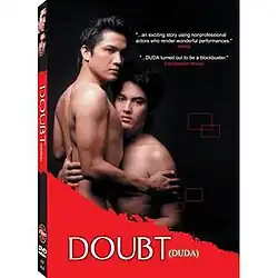 Doubt (Tagalog: Duda) is a 2003 Filipino film about fidelity and deception in a gay relationship.[1] Cris, a young director, meets Erick and develops a relationship with him. After being together for several months, their relationship began to fall apart and is complicated by other people getting involved in their lives.[1]