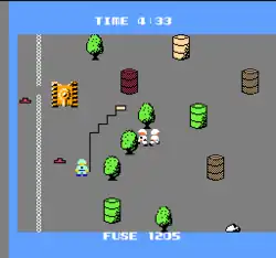 The Famicom version of the game features a Game A, Game B and 2 Play mode. Game A is the basic game, while Game B increases the difficulty by constantly firing missiles at the player. The 2 Play mode has one player controlling the soldier while the other player controls the missiles. The missiles can be used to destroy enemy soldiers, however they can still harm the other player.[8][9][10]