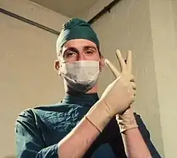 Adams had two brief appearances in the fourth series of Monty Python's Flying Circus. At the beginning of episode 42, "The Light Entertainment War", Adams is in a surgeon's mask (as Dr. Emile Koning, according to on-screen captions), pulling on gloves, while Michael Palin narrates a sketch that introduces one person after another but never gets started. At the beginning of episode 44, "Mr. Neutron", Adams is dressed in a pepper-pot outfit and loads a missile onto a cart driven by Terry Jones, who is calling for scrap metal ("Any old iron..."). The two episodes were broadcast in November 1974.[17] Adams and Chapman also attempted non-Python projects, including Out of the Trees.[18]