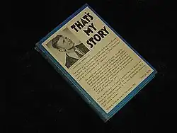 Corrigan wrote his autobiography, That's My Story, within months of the flight; it was published for the Christmas market on 15 December 1938. He also endorsed 'wrong-way' products including a wristwatch that ran counter-clockwise. The following year (1939), he portrayed himself in RKO Radio Pictures' movie biography The Flying Irishman. The $75,000 (equal to $1,695,000 today) he earned from that movie role was the equivalent of 30 years' income at his airfield jobs. Although he did not immediately acknowledge the accomplishment, Charles Lindbergh wrote a friendly four-page handwritten letter to Corrigan in 1939 after Corrigan sent him a copy of the autobiography.