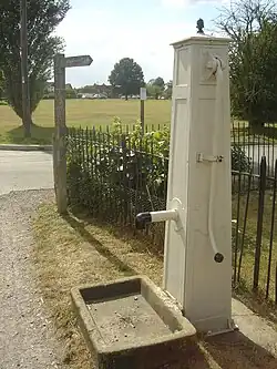 Downside has a large village green, on the northern edge of which is the Cricketers' Inn, dating at its core to the 17th century and a Grade II listed building.[8][9] Immediately off the green in the south east corner is a listed hand-operated water pump.[10]