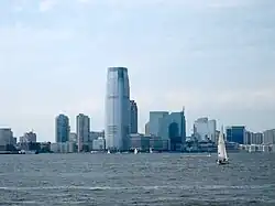 Redevelopment of the Jersey City waterfront has made the city one of the largest centers of banking and finance in the United States and has led to the district and city being nicknamed Wall Street West.[1] By the early 2020s, the construction of numerous residential skyscrapers along the waterfront made median rental rates in Jersey City the highest of any city in the United States.[3]