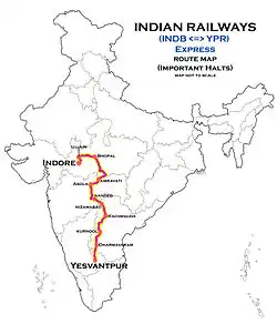 | Termini | Dr. Ambedkar Nagar (Mhow) Yesvantpur Junction | ||||
