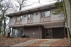The configuration is a small rectangular, two-story box with a flat roof. An early addition was created on the northwest corner of the house. Materials chosen for the construction of the home are contextual with the landscape. The house's lower level walls are composed of dark brown colored bricks.[2]