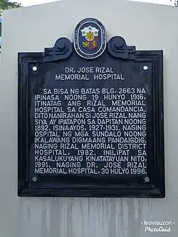 The Dr. Jose Rizal Memorial Hospital is a Level 1 government hospital in the Philippines with an authorized bed capacity of two hundred (200).[1] It is located in Dapitan, Zamboanga del Norte.