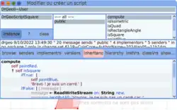 Dr. Geo is shipped with its source code and the developer tools. Therefore its code can be edited and recompiled from Dr. Geo while it is functioning.[8] This design, inherited from Smalltalk, makes easy to test new ideas and new designs.